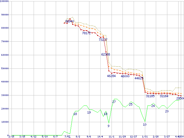 Socket 478 (micro-PGA,FSB 800MHz,L2 512KB,Hyper-Threading,Northwood)の最安値推移