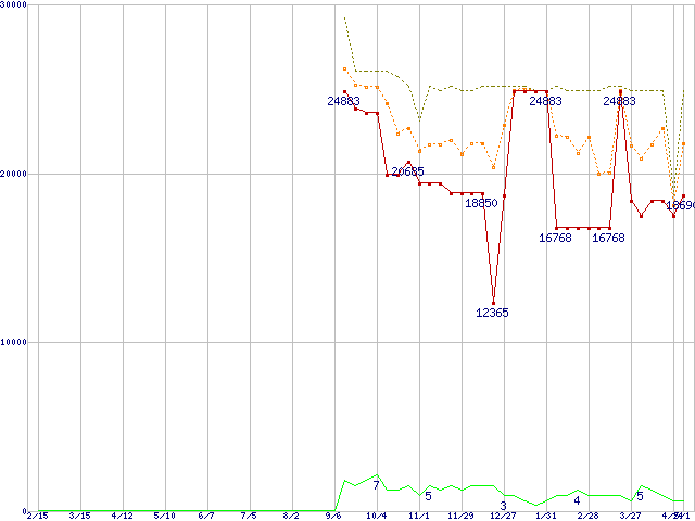 PC4300(DDR533) DDR SDRAM DIMMの最安値推移