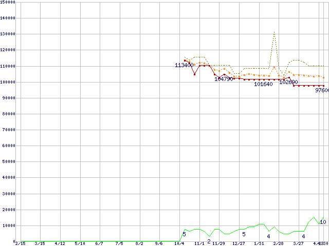 | Xeon 3.2GHz /L3 1MB(FSB533) リテールパッケージの価格推移 |