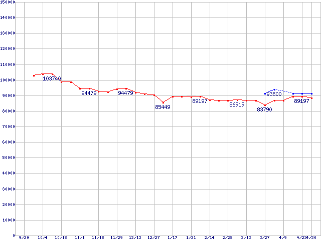 | [↑前グラフ]: | Socket 754 (PGA,FSB 800MHz,ClawHammer)の最安値推移 |