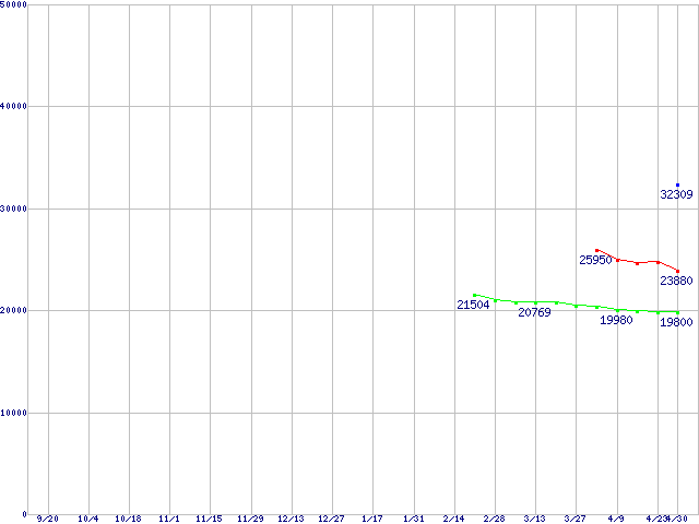 | [↑前グラフ]: | Socket 478 (micro-PGA,FSB 800MHz,L2 512KB,L3 2MB,Hyper-Threading,Gallatin)の最安値推移 |