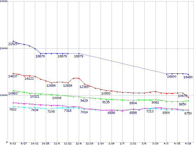 | [↑前グラフ]: | DiamondMax Plus 9 (7200rpm,8MB,UltraATA/133,FDB)の最安値推移 |