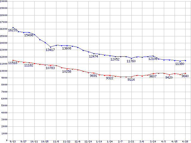 | [↑前グラフ]: | Barracuda 7200.7 Plus (7200rpm,UltraATA/100,8MB,100GB/Platter,FDB)の最安値推移 |
