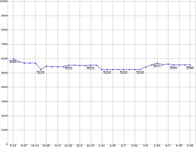 | [↑前グラフ]: | Barracuda 5400.1 (5400rpm,UltraATA/100,2MB,FDB)の最安値推移 |