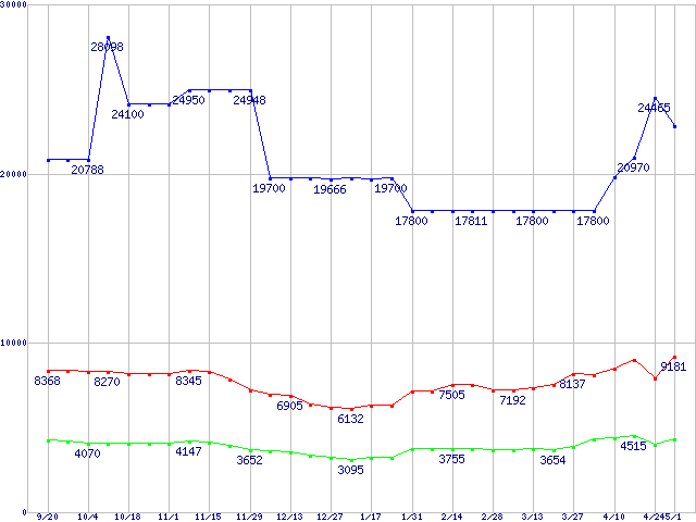 | [↓次グラフ]: | PC133 SDRAM DIMM CasLatency=3の最安値推移 |