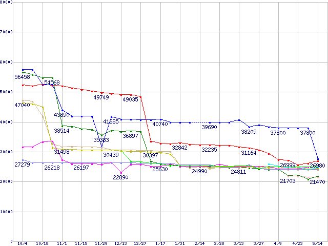 | [↓次グラフ]: | CPU主要製品(最安値3万円~6万円未満)の最安値推移 |