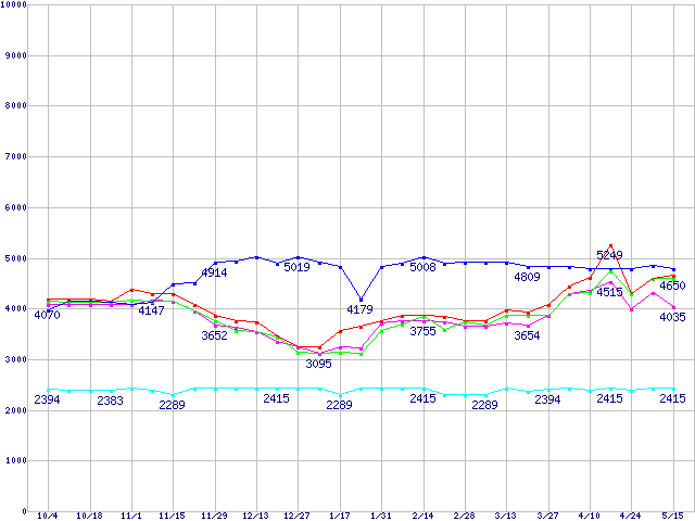 | [↓次グラフ]: | メモリ主要製品(最安値5千円~1万円未満)の最安値推移 |