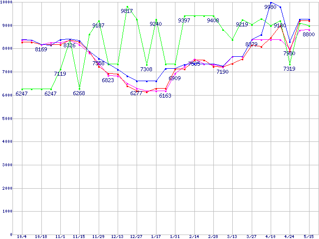 | [↑前グラフ]: | メモリ主要製品(最安値5千円未満)の最安値推移 |