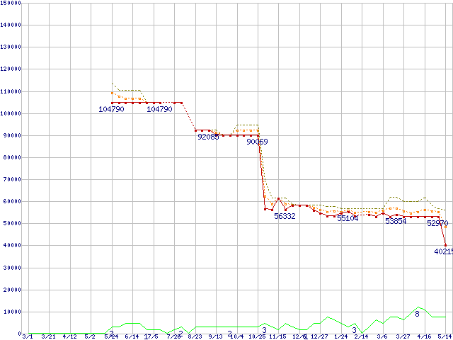 | Opteron 244(1.8GHz) リテールパッケージの価格推移 |