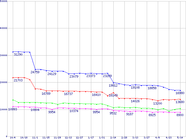 | [↑前グラフ]: | Socket A (OPGA,FSB 400MHz,L2 512KB,Barton)の最安値推移 |