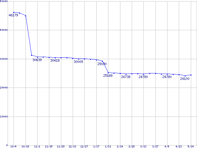 | [↑前グラフ]: | Socket 478 (micro-PGA,FSB 800MHz,L2 512KB,Hyper-Threading,Northwood)の最安値推移 |