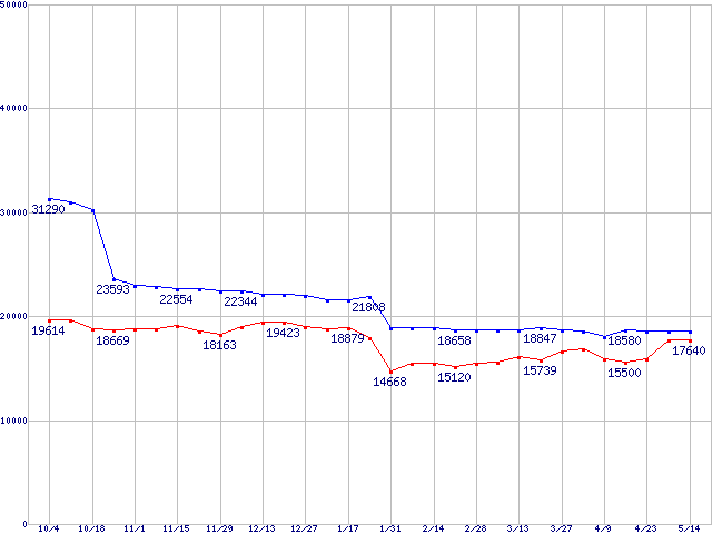 | [↑前グラフ]: | Socket 478 (micro-PGA,FSB 533MHz,L2 1MB,Prescott)の最安値推移 |