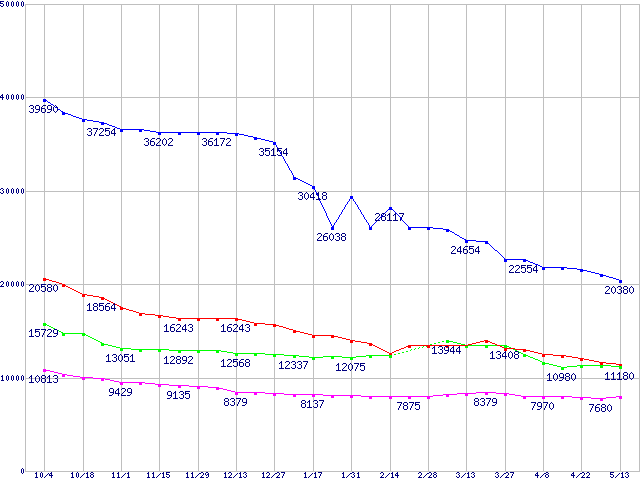 | [↑前グラフ]: | Deskstar 7K400 (7200rpm,SerialATA/150,FDB)の最安値推移 |