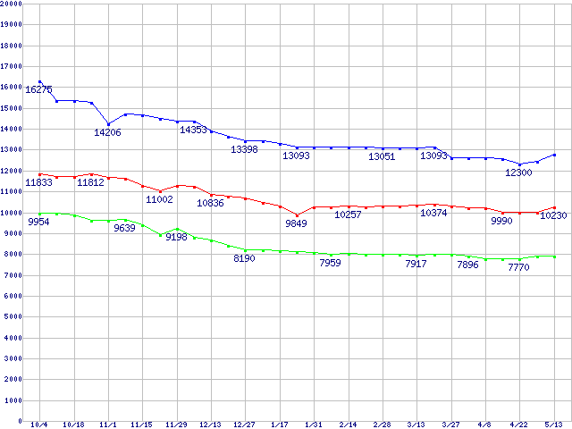 | [↑前グラフ]: | Barracuda 7200.7 SATA (7200rpm,SerialATA,8MB,100GB/Platter,FDB)の最安値推移 |
