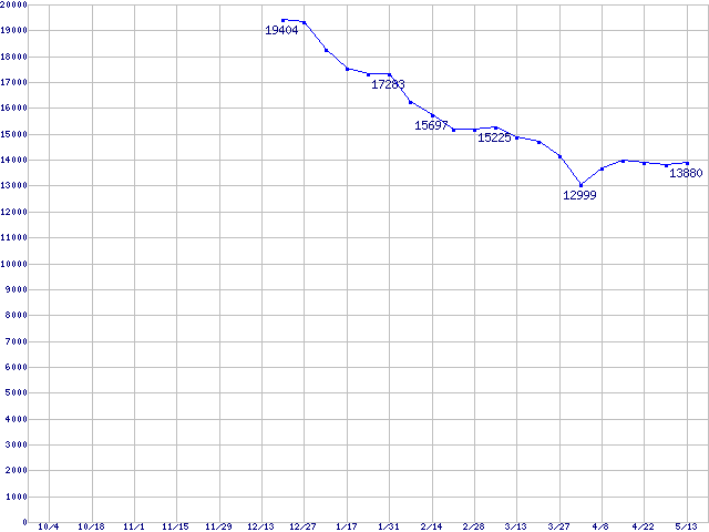 | [↑前グラフ]: | Barracuda 7200.7 (7200rpm,SerialATA,8MB,80GB/Platter,FDB)の最安値推移 |