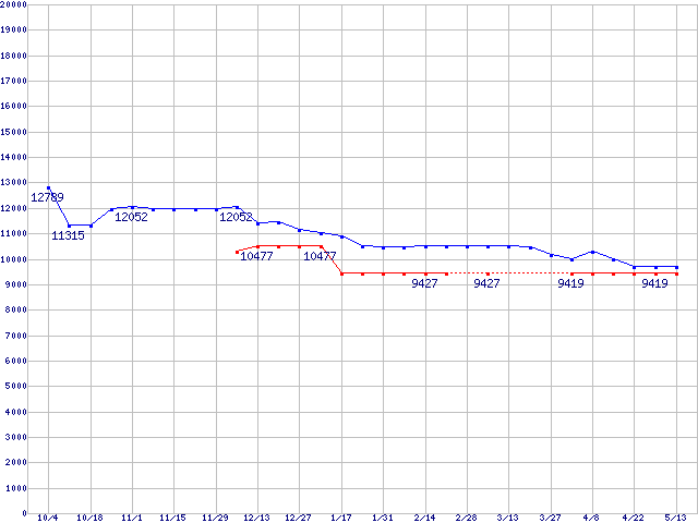 | [↑前グラフ]: | SpinPoint P80 (7200rpm,UltraATA/133,8MB)の最安値推移 |