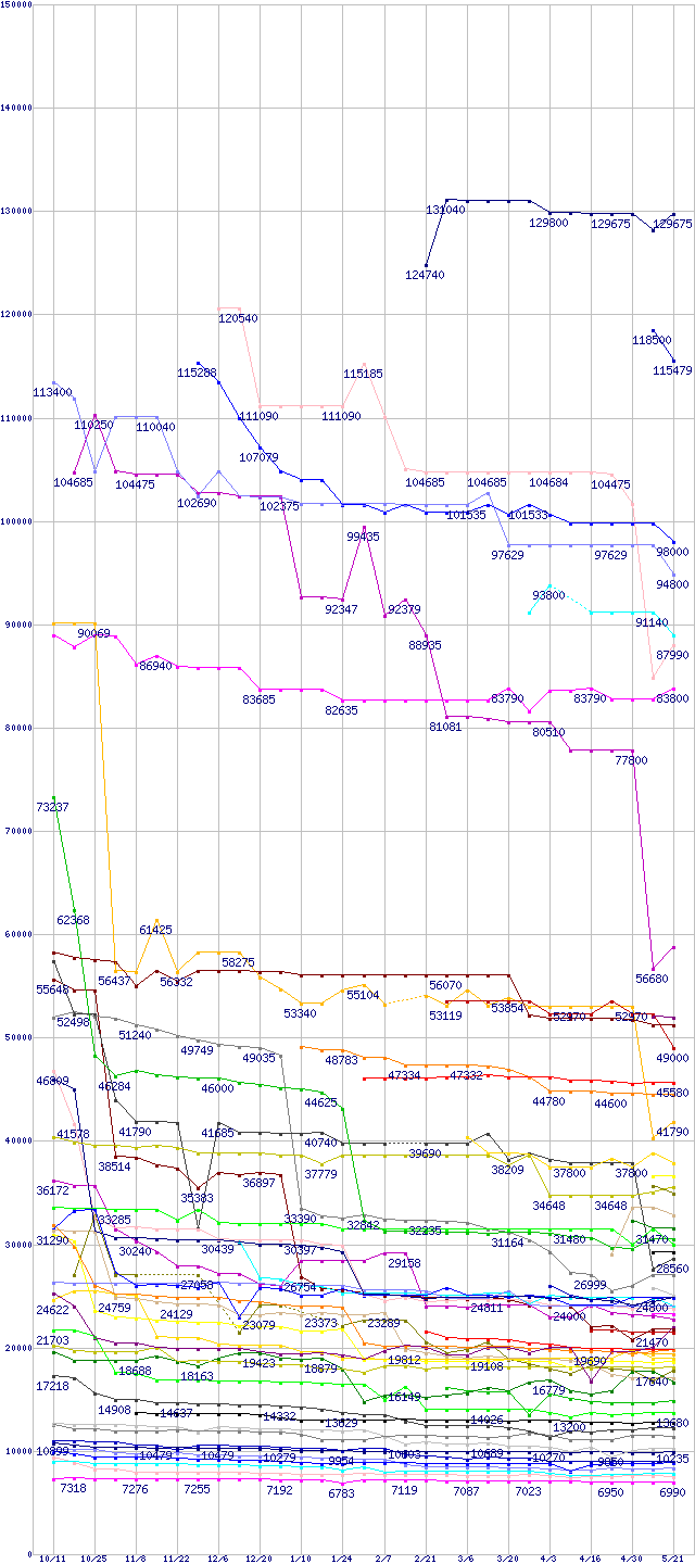 CPU主要製品の最安値推移