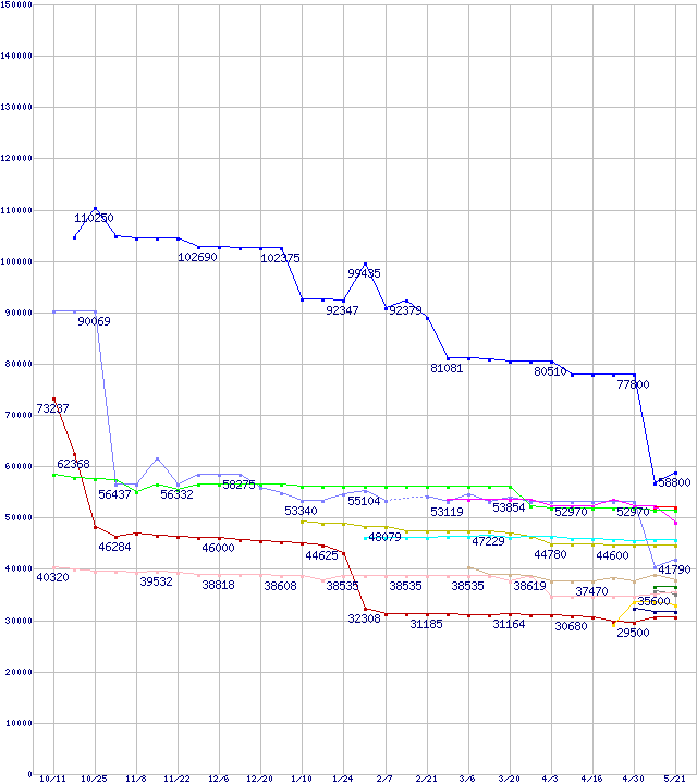 | [↓次グラフ]: | CPU主要製品(最安値6万円以上)の最安値推移 |
