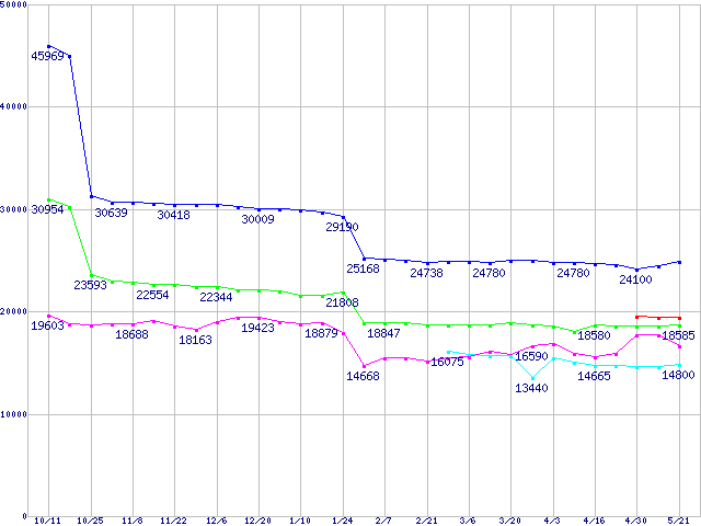 | [↑前グラフ]: | Socket 478・FSB 800MHzの最安値推移 |