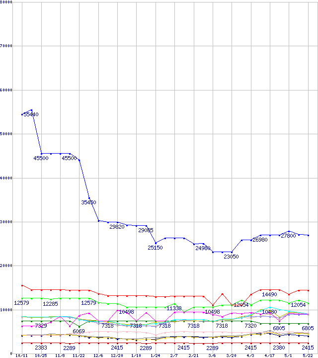メモリ主要製品の最安値推移