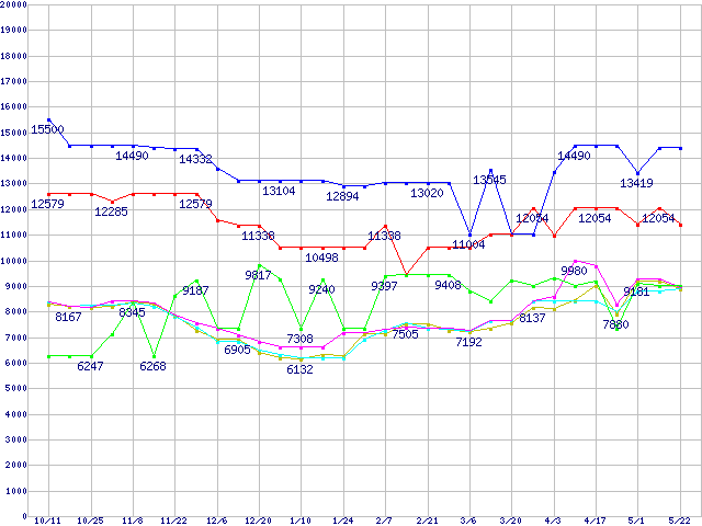 | [↑前グラフ]: | メモリ主要製品の最安値推移 |