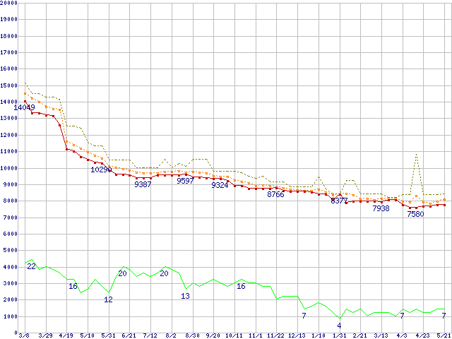 | Athlon XP 2200+ (1.8GHz) リテールパッケージの価格推移 |