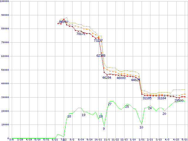 Socket 478 (micro-PGA,FSB 800MHz,L2 512KB,Hyper-Threading,Northwood)の最安値推移