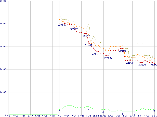 | Opteron 142(1.6GHz) リテールパッケージの価格推移 |
