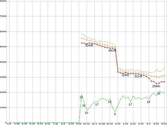 | Athlon 64 3200+(2GHz,L2 1MB) リテールパッケージの価格推移 |
