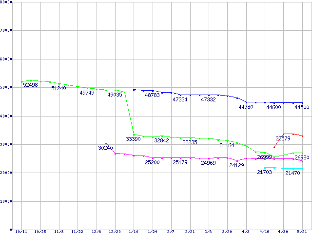 | [↑前グラフ]: | mPGA479M (Micro-FCPGA ,FSB 400MHz,L2 512KB,Banias)の最安値推移 |
