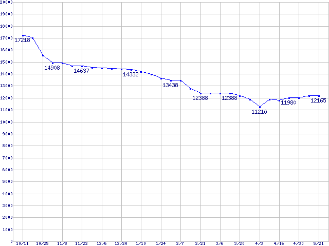 | [↑前グラフ]: | Socket A (OPGA,FSB 333MHz,L2 512KB,Barton)の最安値推移 |