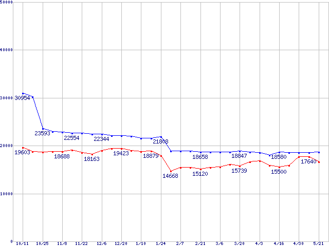 | [↑前グラフ]: | Socket 478 (micro-PGA,FSB 533MHz,L2 1MB,Prescott)の最安値推移 |