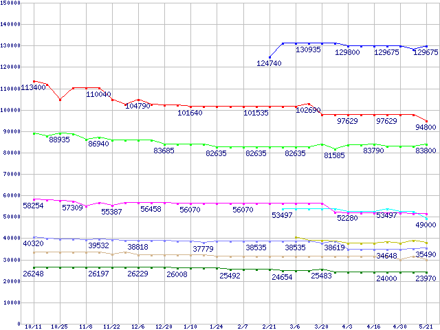 | [↑前グラフ]: | Socket 478 (micro-PGA,FSB 533MHz,L2 512KB,Northwood)の最安値推移 |