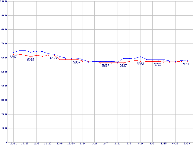 | [↑前グラフ]: | DiamondMax Plus 9 (7200rpm,2MB,UltraATA/133,FDB)の最安値推移 |