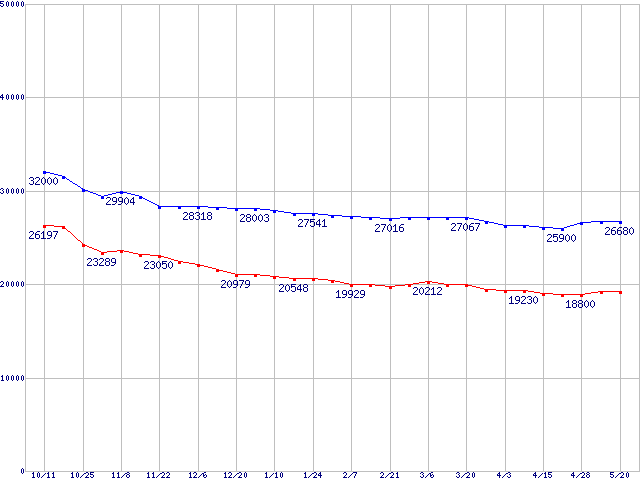 | [↑前グラフ]: | DiamondMax Plus 8 (7200rpm,2MB,UltraATA/133,FDB)の最安値推移 |