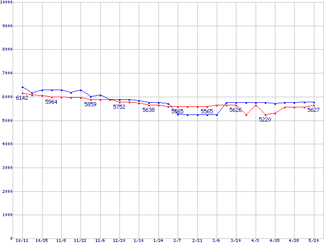 | [↑前グラフ]: | DiamondMax 16 (5400rpm,UltraATA/133,2MB,80GB/Platter,FDB)の最安値推移 |