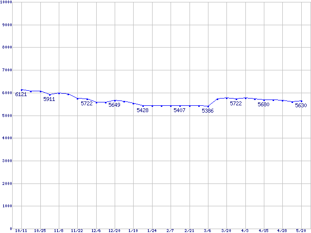 | Barracuda 5400.1 (5400rpm,UltraATA/100,2MB,FDB)の最安値推移 |