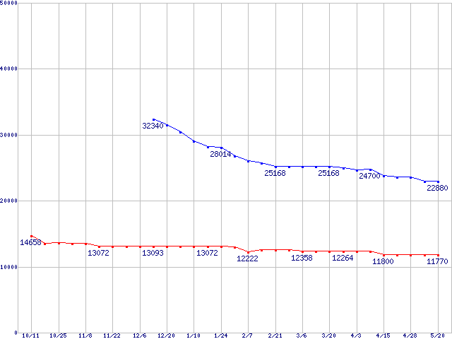 | [↑前グラフ]: | U Series X (5400rpm,UltraATA/100)の最安値推移 |