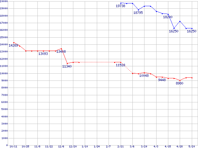 | [↑前グラフ]: | WD Caviar(Special Edition) (7200rpm,UltraATA/100,8MB)の最安値推移 |