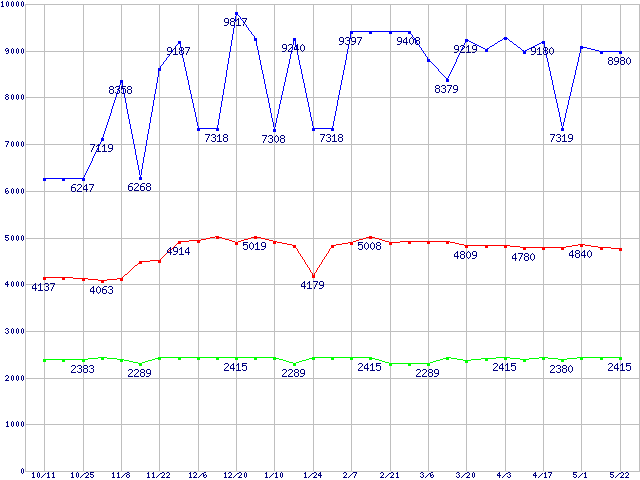 | [↑前グラフ]: | PC2100(DDR266) DDR SDRAM DIMM(CL 2.5)の最安値推移 |
