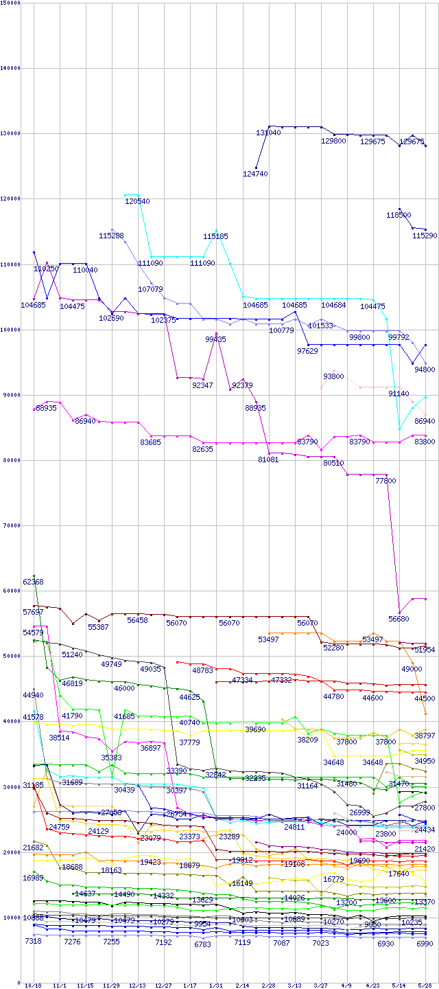 CPU主要製品の最安値推移