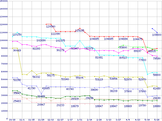 | [↑前グラフ]: | CPU主要製品(最安値6万円以上)の最安値推移 |