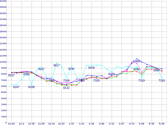 | [↓次グラフ]: | メモリ主要製品(最安値1万円以上)の最安値推移 |
