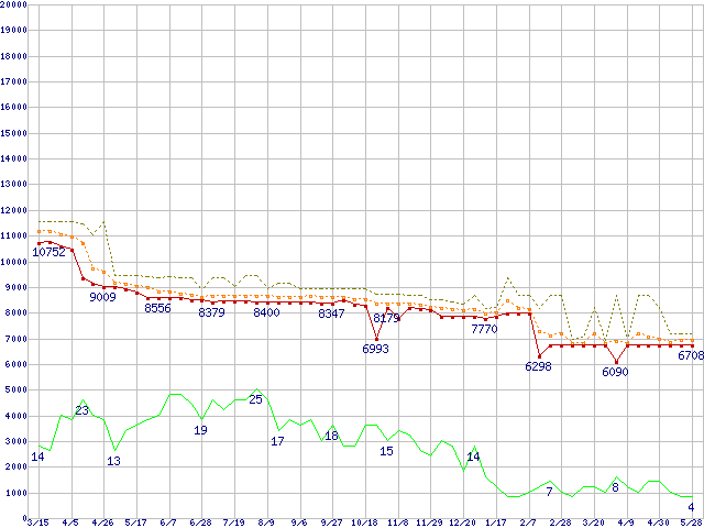 Socket A (OPGA,FSB 266MHz,L2 256KB,Thoroughbred)の最安値推移