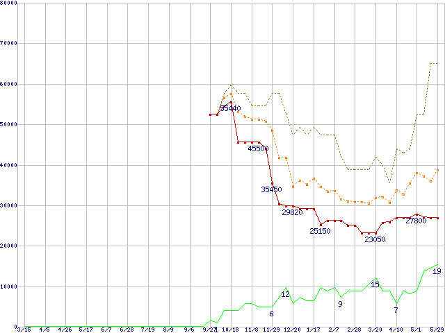 PC3200(DDR400) DDR SDRAM DIMMの最安値推移