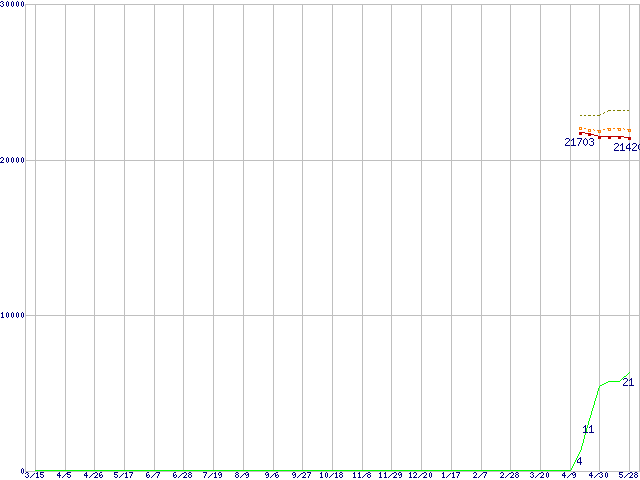 | Athlon 64 2800+(1.8GHz,L2 512KB) リテールパッケージの価格推移 |