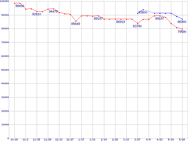 | [↑前グラフ]: | Socket 754 (PGA,FSB 800MHz,ClawHammer)の最安値推移 |