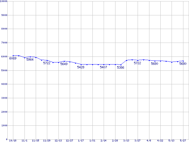 | Barracuda 5400.1 (5400rpm,UltraATA/100,2MB,FDB)の最安値推移 |