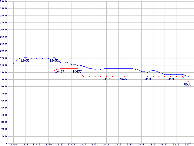 | SpinPoint P80 (7200rpm,UltraATA/133,2MB)の最安値推移 |