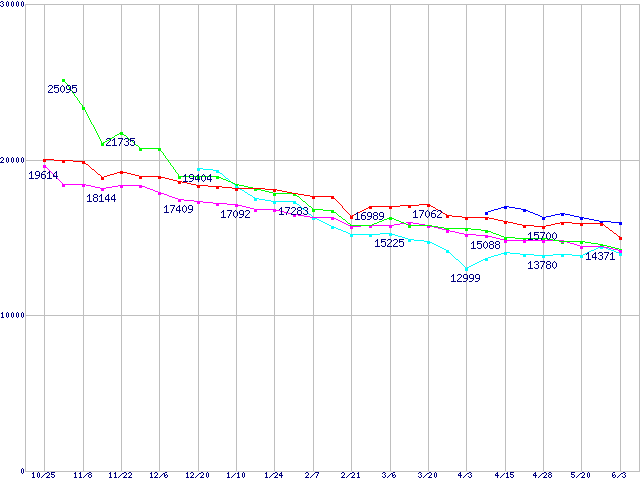 | [↑前グラフ]: | HDD 160~200GB未満の最安値推移 |